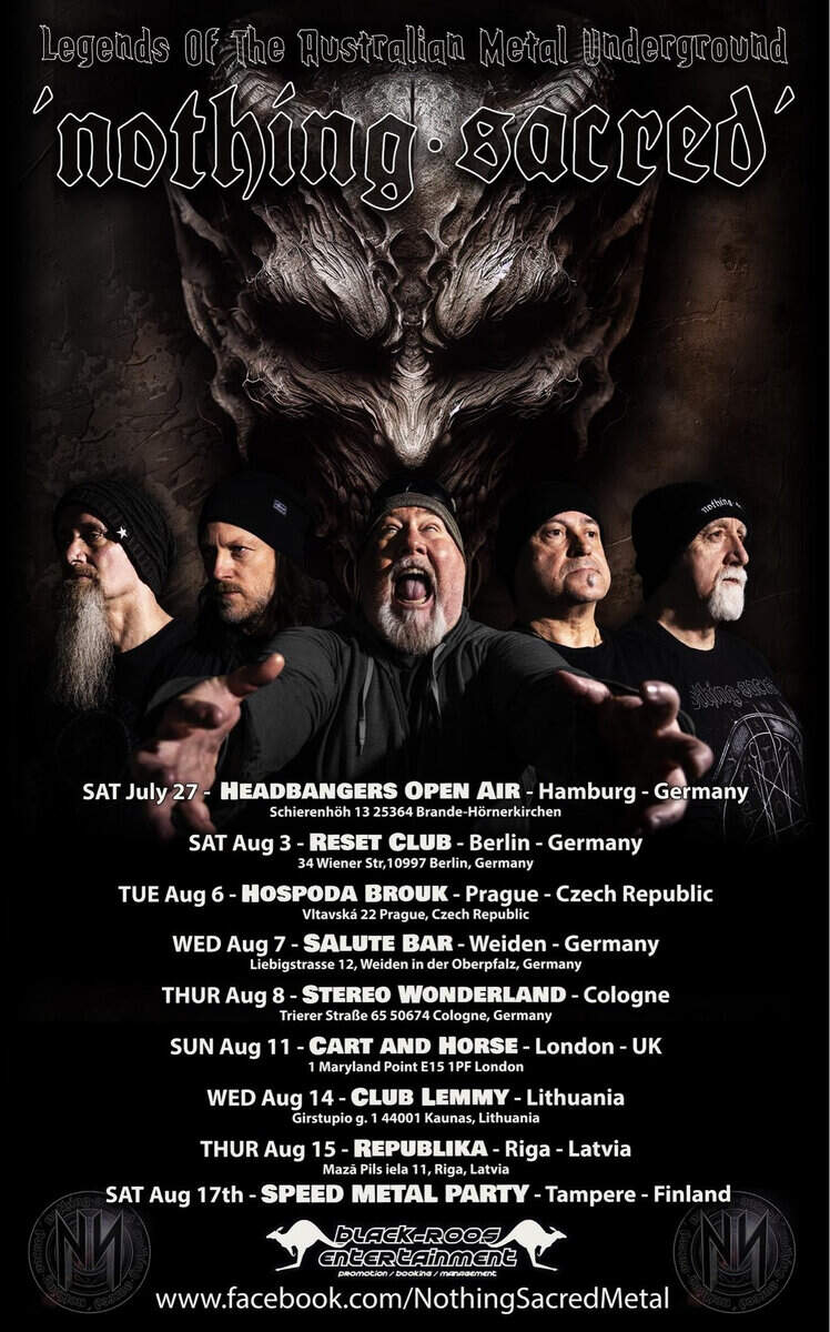 Οι Nothing Sacred, ένα από τα πρωτοπόρα heavy metal συγκροτήματα της Αυστραλίας, είναι ενθουσιασμένοι που ανακοινώνουν την πολυαναμενόμενη ευρωπαϊκή περιοδεία τους για το 2024.