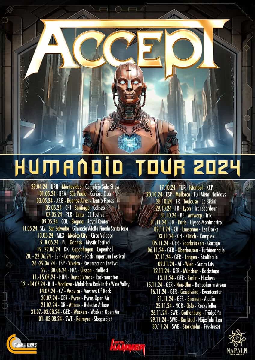Ακόμα και μετά από περισσότερα από 40 χρόνια, οι ACCEPT παραμένουν μία από τις ηγετικές δυνάμεις στην παγκόσμια heavy metal σκηνή, εμφανίζοντας για άλλη μια φορά στα σημαντικότερα rock and metal φεστιβάλ το καλοκαίρι του 2024, συμπεριλαμβανομένων των θρυλικών Wacken Open Air και Hellfest.