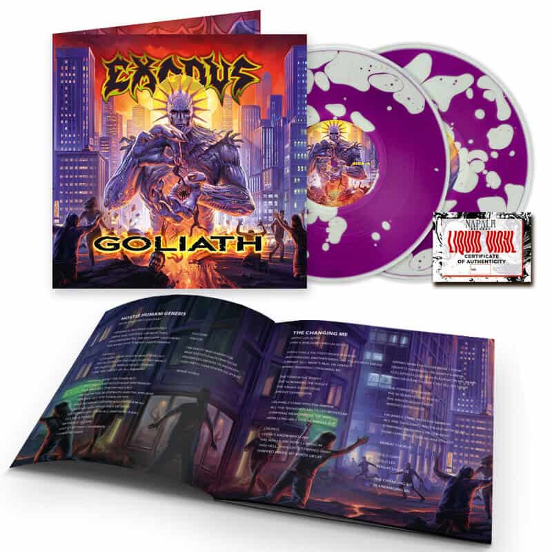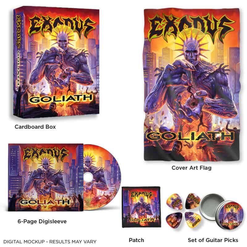 Παραγωγή από τους ίδιους τους EXODUS, μίξη και mastering από τον Mark Lewis (Whitechapel, Nile, Undeath), το Goliath ακτινοβολεί την εκρηκτική αυθεντικότητα που έχει ξεχωρίσει τους EXODUS από τους συνοδοιπόρους τους εδώ και αιώνες από την κυκλοφορία του ντεμπούτου τους, του εμβληματικού thrash μανιφέστου “Bonded By Blood” του 1985. Σαράντα χρόνια μετά, οι EXODUS παραμένουν αμετακίνητοι στην άρνησή τους να συμβιβαστούν με την ασφάλεια της μετριότητας, μη φοβούμενοι τίποτα και κανέναν, συνεχίζοντας να σφυρηλατούν το σήμα κατατεθέν τους με την ίδια αποφασιστικότητα όπως και στα πρώτα τους βήματα.