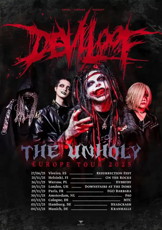 Το Extreme metal visual kei συγκρότημα DEVILOOF ανακοίνωσε την πρώτη του περιοδεία στην Ευρώπη. Με τίτλο “THE UNHOLY”, η περιοδεία περιλαμβάνει οκτώ headline εμφανίσεις και μία συμμετοχή σε φεστιβάλ.