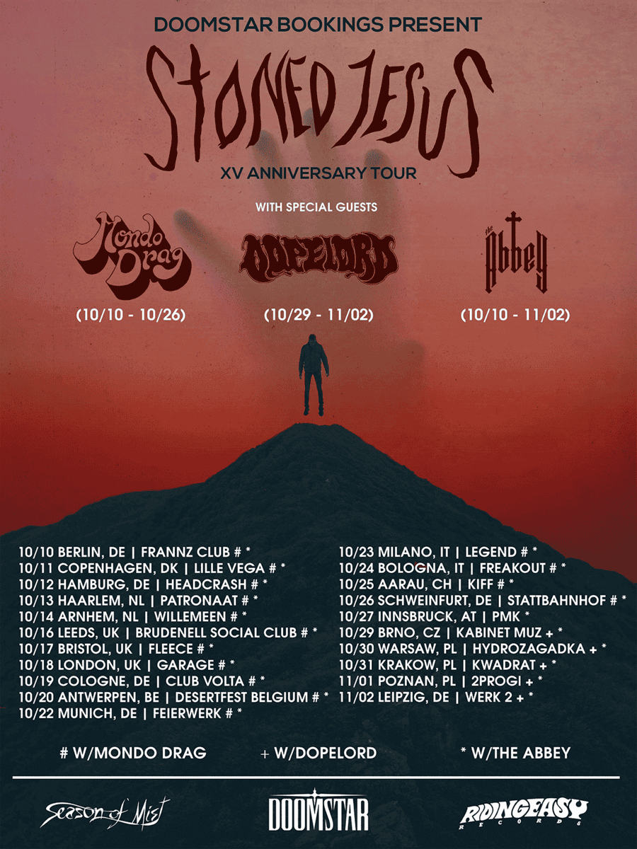 Οι STONED JESUS θα βγουν έξω για να γιορτάσουν την 15η επέτειό τους σε όλη την ηπειρωτική Ευρώπη.