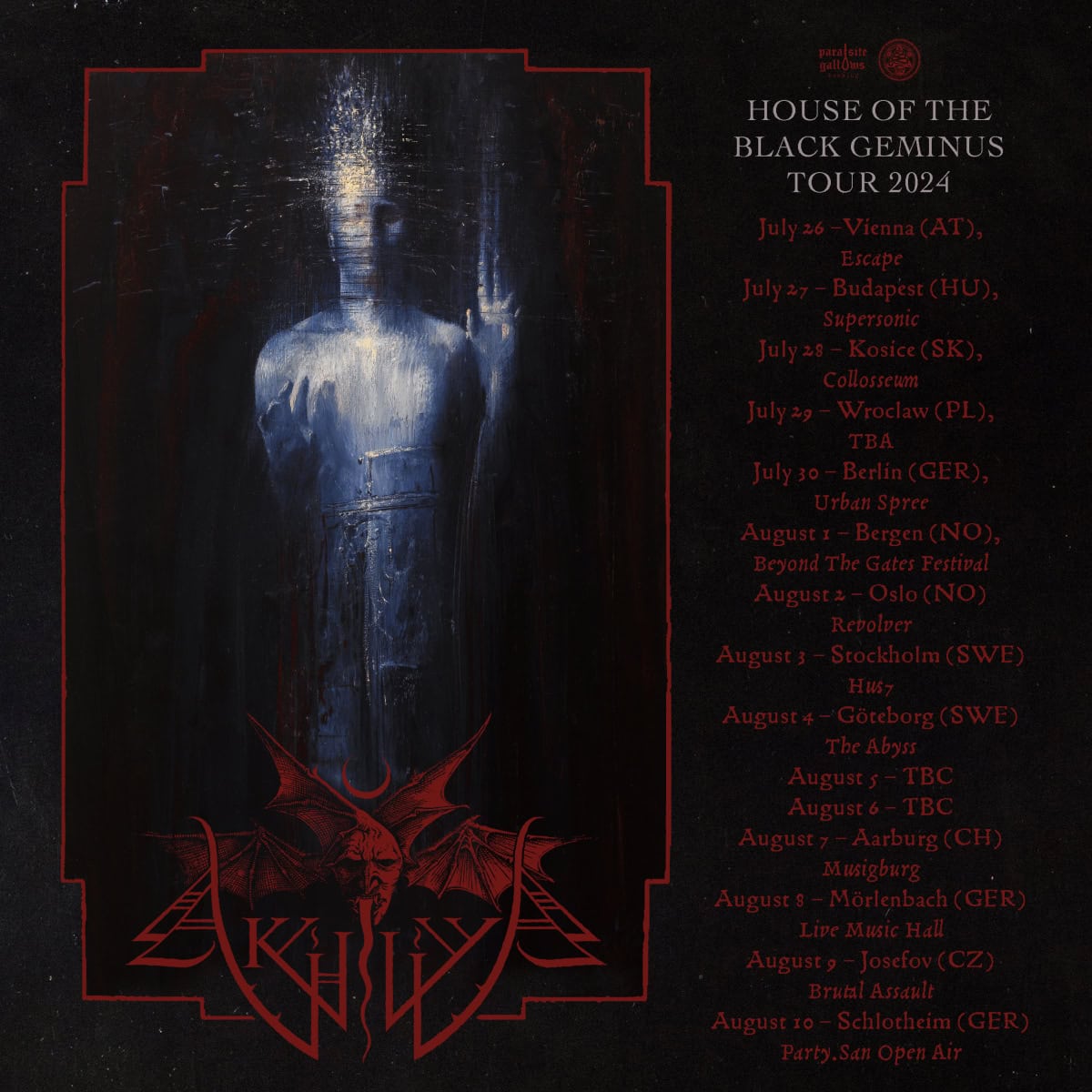 Οι AKHLYS θα ξεκινήσουν την ευρωπαϊκή περιοδεία “House of the Black Geminus” από τις 26 Ιουλίου. Έχοντας τελειοποιήσει τις ζωντανές εμφανίσεις τους μέσω εκτεταμένων πρόσφατων περιοδειών, οι AKHLYS θα παρουσιάσουν επίσης ένα ειδικά εκτεταμένο σετ στο εναρκτήριο φεστιβάλ Serv of Chaos του DMP τον Οκτώβριο. Μη χάσετε αυτό το έντονο θέαμα εφιαλτικής Black Metal μαγείας. Βρείτε όλες τις πληροφορίες εδώ, όλες τις ημερομηνίες περιοδείας παρακάτω και στο φυλλάδιο.