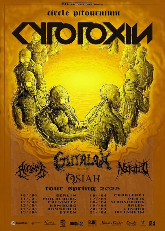 Οι Cytotoxin ανακοίνωσαν πρόσφατα ολοκαίνουργιες ημερομηνίες περιοδείας στην ΕΕ / Ηνωμένο Βασίλειο για τον Απρίλιο και τον Μάιο του τρέχοντος έτους, μαζί με τους Gutalax (σε επιλεγμένες ημερομηνίες), Acranius, Necrotted και Osiah.