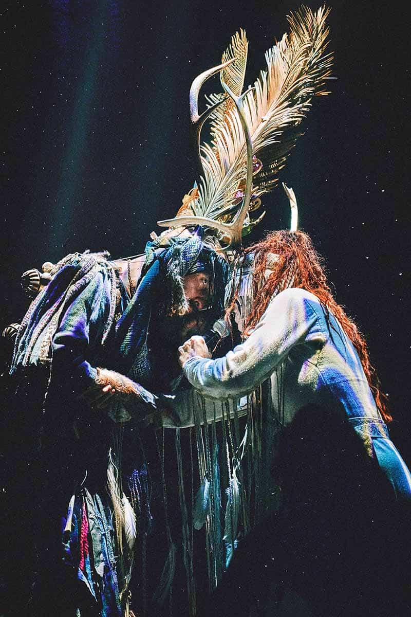 Λίγο αργότερα, το κοινό παρασύρεται σε έκσταση, παρασυρόμενο από θυμίαμα και τραγούδι στο λαιμό, αρχέγονους ρυθμούς, λεπτές ηλεκτρονικές υφές, ένα μαγευτικό σόου φωτός, έναν στρατό πολεμιστών και εκρήξεις φωτιάς.