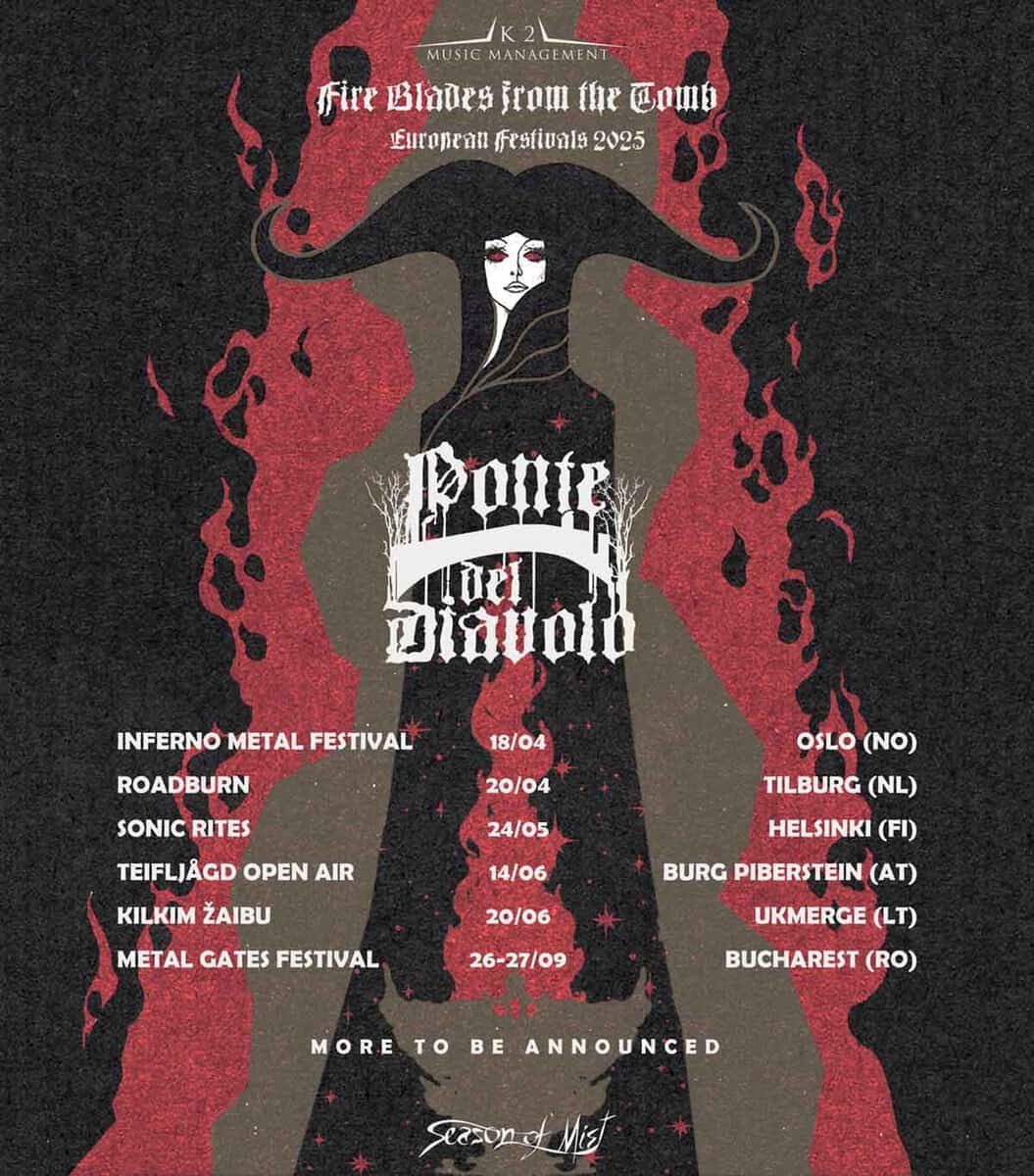 Μετά το κολοσσιαίο κύμα υποστήριξης για το στοιχειωμένο ντεμπούτο τους “Fire Blades from the Tomb”, η μπάντα είναι έτοιμη να πυροδοτήσει τα πιο σεβαστά metal φεστιβάλ της ηπείρου με το ασυναγώνιστο black & doom metal τους.