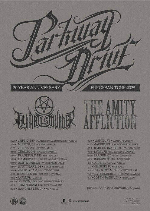 Το δεύτερο εξάμηνο του 2025 θα δούμε τους The Amity Affliction να βρίσκονται σε headline χώρους σε όλη τη Βόρεια Αμερική, πριν συμμετάσχουν με τους Parkway Drive στην περιοδεία της 20ης επετείου τους στην Ευρώπη από τον Σεπτέμβριο έως τον Νοέμβριο.