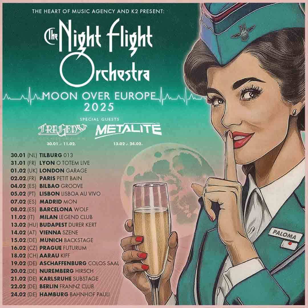 Για να γιορτάσουν την κυκλοφορία του νέου μεγάλου μήκους, οι THE NIGHT FLIGHT ORCHESTRA θα ξεκινήσουν μια πλήρη ευρωπαϊκή περιοδεία στα τέλη Ιανουαρίου 2025.