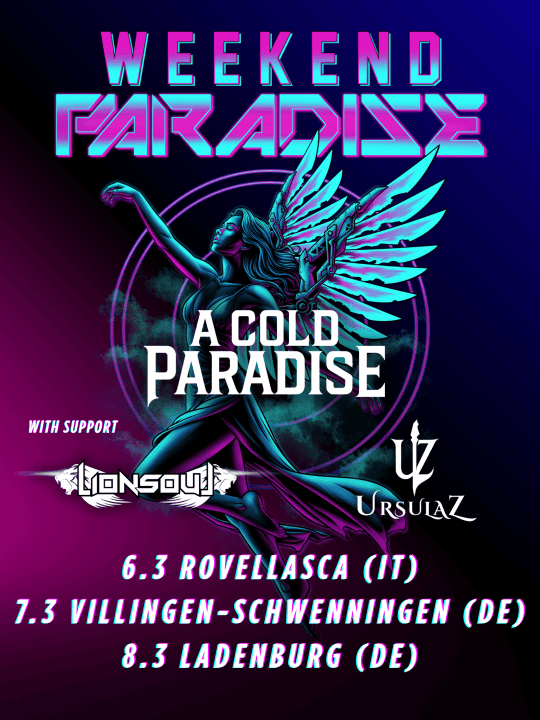 Τον Μάρτιο, οι A Cold Paradise θα παρουσιάσουν για πρώτη φορά το νέο τους υλικό ζωντανά, μέσα από μια σειρά headline εμφανίσεων με τίτλο “Weekend Paradise”, προσφέροντας στο κοινό μια αποκλειστική πρώτη γεύση από το επερχόμενο άλμπουμ. Θα είναι η πρώτη ευκαιρία να βιώσει κανείς τους A Cold Paradise επί σκηνής — ένα γεγονός που δεν πρέπει να χάσετε.