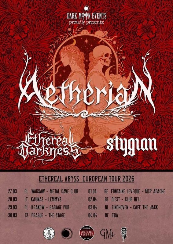Η Dark Moon Events παρουσιάζει μια νέα ευρωπαϊκή περιοδεία την άνοιξη του 2026, φέρνοντας μαζί τρία συγκροτήματα από την Ευρωπαϊκή metal σκηνή: τους Έλληνες AETHERIAN, τους Βέλγους ETHEREAL DARKNESS και τους Ιταλούς STYGIAN.