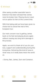 Σε ανακοίνωση του συγκροτήματος, αναφέρεται ότι οι Βρετανοί αναγκάζονται να ακυρώσουν την υπόλοιπη ευρωπαϊκή περιοδεία τους, λόγω του ότι ο drummer James Cassells έσπασε το πόδι του.