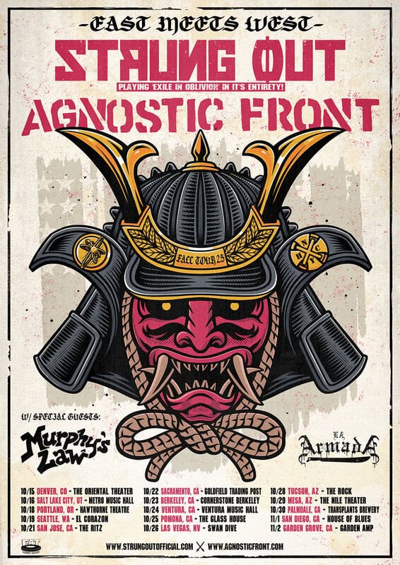 The band is set to tour the Western United States this fall with a stacked line-up including STRUNG OUT (playing “Exile In Oblivion” in its entirety), MURPHY’S LAW and LA ARMADA. The tour is set to kick off on Wednesday, October 15th in Denver CO and will continue to pummel audiences across the West Coast until ending on November 2nd in Garden Grove CA. All shows are in support of their most recent album, “Get Loud!”, which was released in 2019.