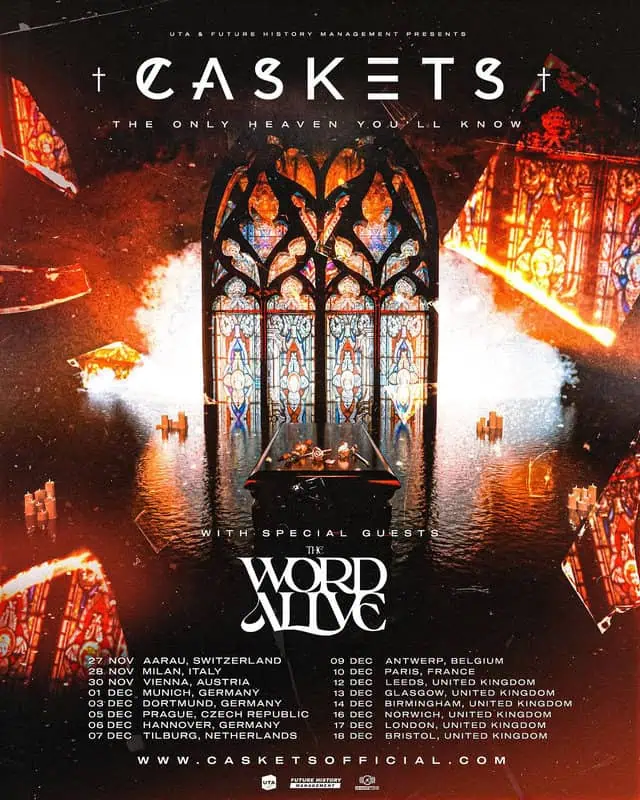 Now in 2025, with over 350 million career streams to date, Caskets return stronger and more focused than ever. With new a new album on the horizon, the band continues to explore the space between melodic vulnerability and explosive catharsis, connecting deeply with a fanbase that grows with every release.