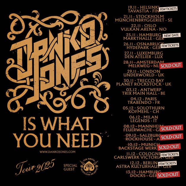To celebrate the release, the band will hit the road this winter for the “Danko Jones Is What You Need” European Tour 2025, with TUK SMITH & THE RESTLESS HEARTS supporting on most dates: