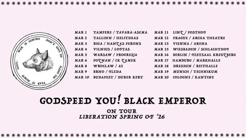 GODSPEED YOU! BLACK EMPEROR have announced plans to embark on a tour of European cities in 2026.