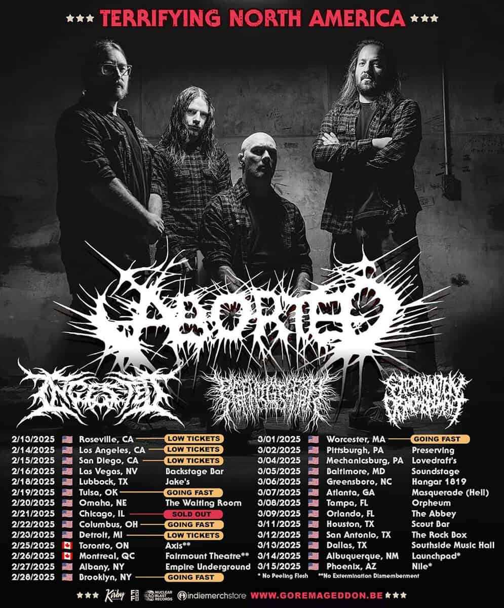 INGESTED will return to North American stages this week with ABORTED. The month-long Terrifying North America tour begins February 13th in Roseville, California and runs through March 15th in Phoenix, Arizona. Additional support will be provided by PEELING FLESH and STABBING. In May, the band will support Born Of Osiris on a month-long European run from May 8th in Brno, Czech Republic through June 9th in Aarau, Switzerland. Additional support will be provided by THE VOYNICH CODE and labelmates, ENTHEOS.