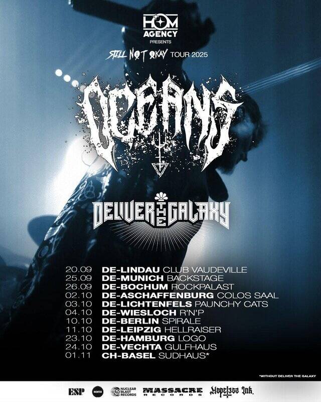 To support the release of their upcoming EP, OCEANS will hit the road this fall for the Still Not Okay Tour 2025. Expect 11 intense shows packed with raw emotion, heaviness, and a powerful message – because this band is still not okay, and neither are we.