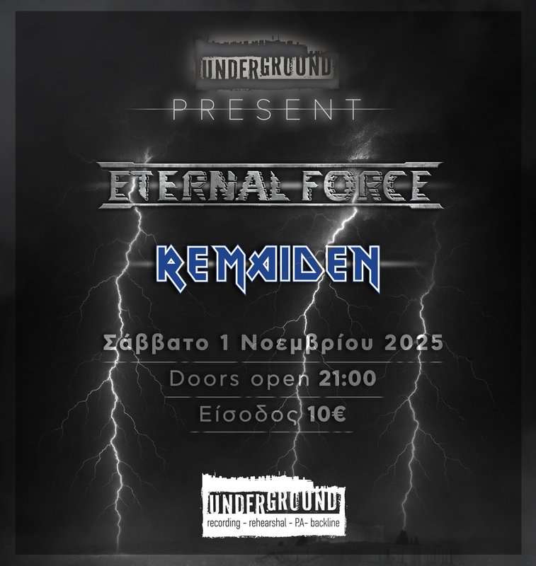 Οι Heavy / Thrash Metallers ETERNAL FORCE θα δώσουν τη δεύτερη συναυλία τους στη 1 Νοεμβρίου στα Underground Music Studios (Εθνάρχου Μακαρίου 17, Περιστέρι) μαζί με τους REMAIDEN.