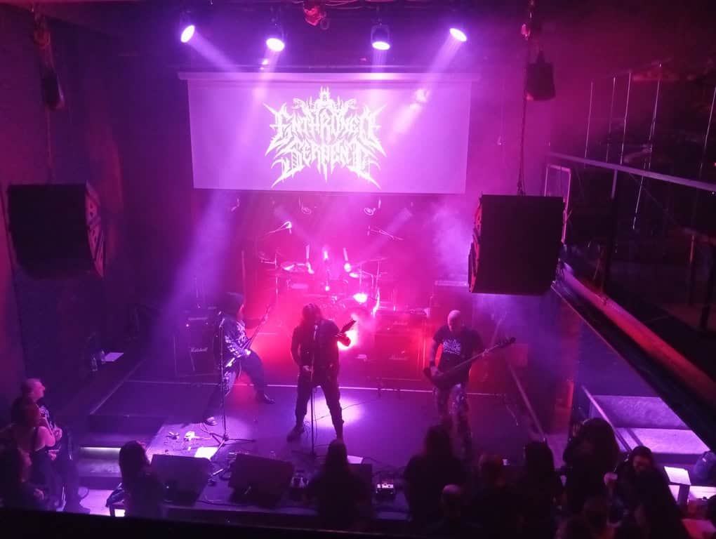 Το επόμενο set ήταν κάτι που περίμενα καιρό να δω αφού αυτό που δημιούργησαν οι ELDINGAR το 2024 με το “Lysistrata” προσωπικά το θεωρώ περισσότερο ως έργο τέχνης παρά ένα απλό Black Metal άλμπουμ, τόσο συνθετικά όσο και στιχουργικά. Από την αρχή κιόλας με το “Ares” δημιουργήθηκε μια σχεδόν μυσταγωγική ατμόσφαιρα στον χώρο. Τα μέλη της μπάντας χωρίς περιττές κινήσεις ή σκηνικά που μπορεί να τραβούσαν την προσοχή, απέδωσαν ιδανικά τα μόλις τέσσερα τραγούδια τους. Τρία από το “Lysistrata” και το “Trauma” από το πρώτο τους άλμπουμ, “Maenads”. Άλλωστε η διάρκεια των τραγουδιών ήταν το λιγότερο 8λεπτη οπότε δεν υπήρχε χρόνος για κάτι παραπάνω. Σε αντίθεση με τους ENTHRONED SERPENT, οι ELDINGAR πειραματίζονται περισσότερο, εντάσσουν μάλιστα και ελληνικό στίχο στα τραγούδια τους αφού η στιχουργική τους βάση είναι η ελληνική μυθολογία και φιλοσοφία και με αιχμή του δόρατος τον εξαιρετικό Αντρέα Σιμιτζή στα φωνητικά δημιουργούν μια πηχτή, σχεδόν πνιγερή ατμόσφαιρα στον χώρο. Σίγουρα θα επιδιώξω να τους ξαναδώ σε κάποιο δικό τους live.