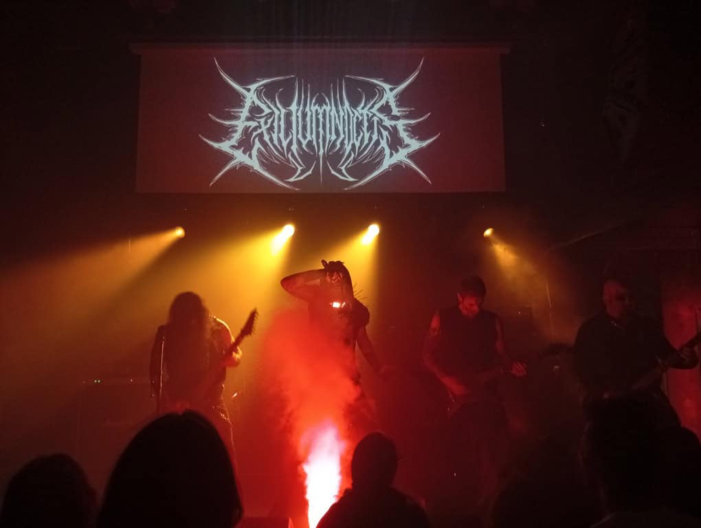 Αφού λοιπόν είχαμε ζεσταθεί για τα καλά είχε έρθει η ώρα για λίγη Βολιώτικη (μαύρη) μαγεία! Οι EXILIUM NOCTIS με το “Pactum Diaboli” μπήκαν για τα καλά στον χάρτη της Ελληνικής Black Metal κολάσεως. Το άλμπουμ ακροβατεί μεταξύ του Black και του Death με τις ‘90s Σουηδικές επιρροές να είναι εμφανείς αλλά οι EXILIUM NOCTIS έχουν βάλει τις δικές τους πινελιές, οι οποίες ζωντανά αποδόθηκαν υπέροχα. Το σκηνικό εντυπωσιακό με τη φλόγα που έκαιγε στο κέντρο της σκηνής, τους πυκνούς καπνούς που κάλυπταν τον χώρο και τη θεατρική εμφάνιση των μελών της μπάντας με τις κατάλληλες ενδυμασίες και τα βαμμένα πρόσωπα. Για όσους τους ξέρουν, οι εμφανίσεις τους έχουν μια τελετουργική αίσθηση και ο μαζεμένος αλλά φιλόξενος χώρος του Temple είναι ιδανικός. Τέτοια live θέλουν το κοινό κοντά στους μουσικούς για να υπάρχει η αίσθηση της συμμετοχής σε μια occult τελετή με χαμηλό φωτισμό, θολή ατμόσφαιρα από τους καπνούς και σκοτεινά πνεύματα να περιφέρονται στον χώρο. Οι EXILIUM NOCTIS φυσικά είχαν τη δυνατότητα να παίξουν ένα πλήρες σετ με επίκεντρο το “Pactum Diavoli” (διαβάστε τη σχετική δισκοκριτική εδώ!), το οποίο ακούσαμε σχεδόν στην ολότητά του αλλά τίμησαν βεβαίως και το ντεμπούτο τους “Fragments of Apocalypse” κλείνοντας μάλιστα τη βραδιά με το “Night Witches”.. Κάπως έτσι, η σεμνή τελετή έλαβε τέλος γύρω στα μεσάνυκτα, ιδανική ώρα να δώσουμε τη σκυτάλη στις μάγισσες της αποκάλυψης και να ανανεώσουμε το ραντεβού μας.