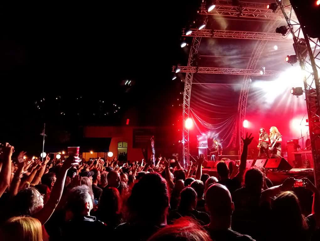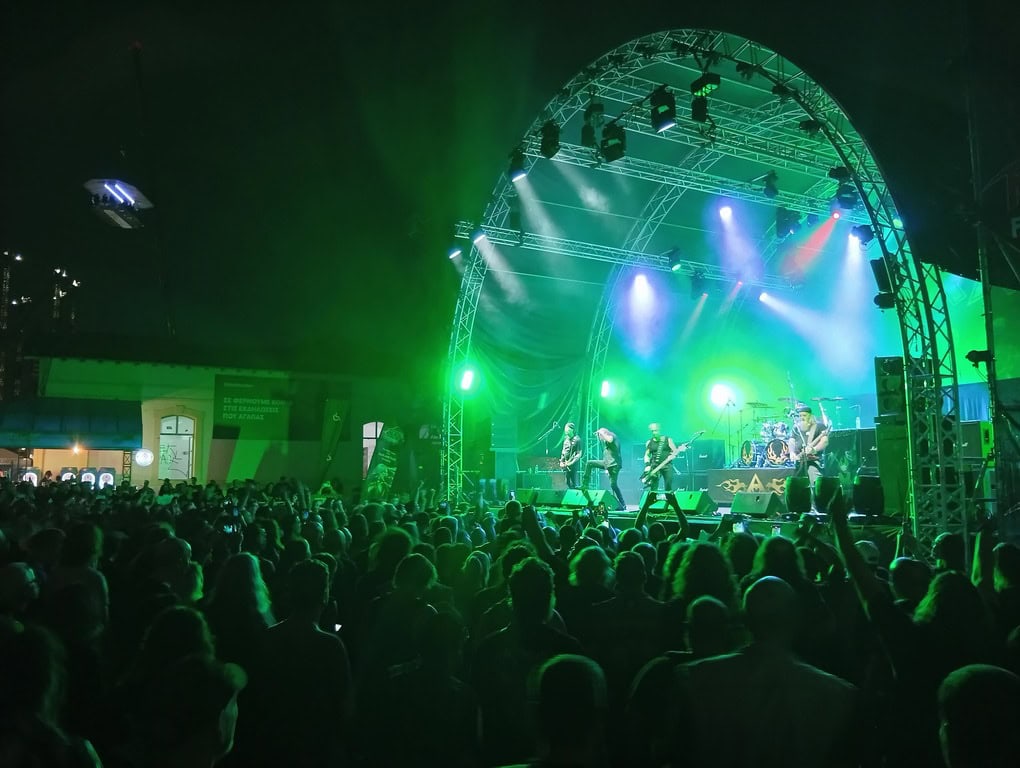 Όμως, το highlight της πρώτης μέρας ήταν αναμφίβολα οι OVERKILL. Οι Αμερικανοί βετεράνοι του Thrash Metal ξεσήκωσαν με ευκολία το κοινό που ένα μεγάλο μέρος του είχε έρθει αποκλειστικά γι’ αυτούς. Σίγουρα, η μεγάλη attraction ήταν ο τεράστιος Blitz που παρότι πλησιάζει τα 70 πλέον δεν πτοήθηκε στιγμή και γέμισε τον αέρα της Τεχνόπολης με αυτό το μοναδικό, vintage, heavy metal γρέζι. Και σκεφτείτε ότι δεν έχει περάσει και λίγα με την υγεία του. Σε ένα αρκετά γεμάτο set των 75 λεπτών προλάβαμε και ακούσαμε ύμνους όπως το “Rotten to the Core”, “Bring me the Night”, “In Union we Stand” και για κερασάκι το “Fuck You” που αποτέλεσε την αφορμή για ένα καθολικό ξέσπασμα κοινού και μουσικών. Σχεδόν από την πρώτη στιγμή δημιουργήθηκε ένα μεγάλο mosh pit που δυστυχώς είχε και θύματα με σπασμένα πόδια και αρκετές μελανιές. Μεγάλη προσοχή παιδιά! Κάπως έτσι και με τα αυτιά μας να βουίζουν ακόμα ευχάριστα ολοκληρώθηκε η εμφάνιση των OVERKILL.