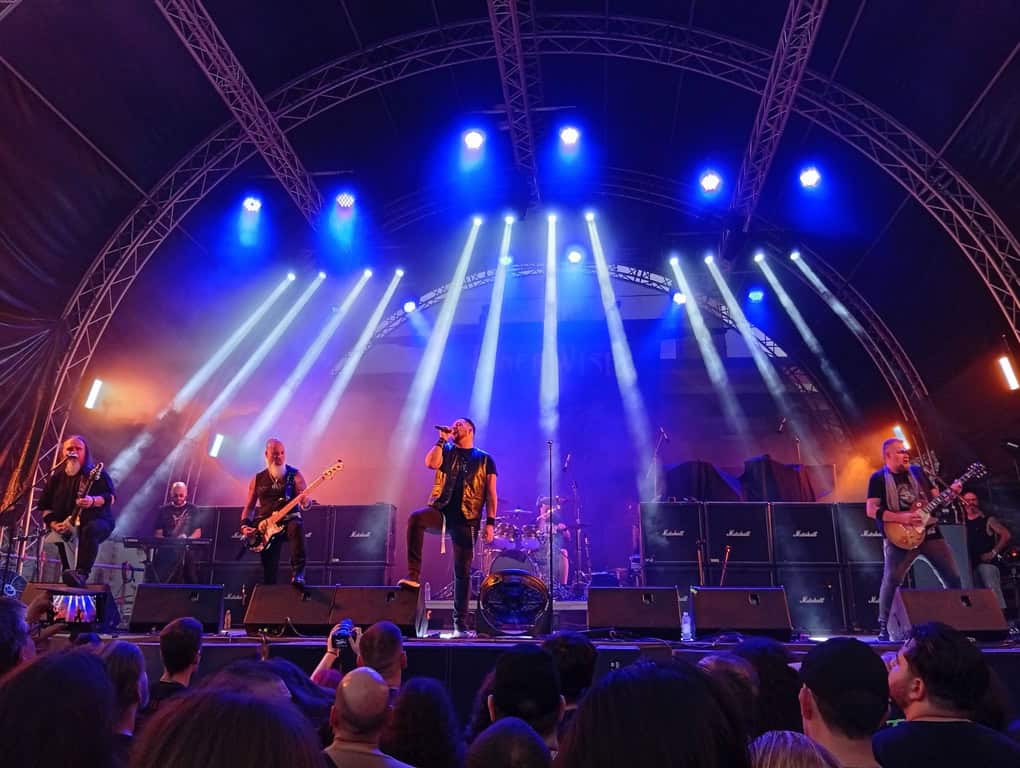 Η δεύτερη ημέρα του φεστιβάλ για κάποιους τυχερούς ξεκίνησε από πολύ νωρίς με τα δύο ακουστικά show των CONCEPTION (Roy Khan και Tore Ostby) και PAIN OF SALVATION (Daniel Gildenlow και Johan Hallgren). Ακόμα μία καινοτομία του φεστιβάλ που δε θυμάμαι να έχουμε ξανασυναντήσει στη χώρα μας. Οι υπόλοιποι κοινοί θνητοί καταφτάσαμε κατά δεκάδες μετά τις 17:00 για να προλάβουμε τους επικούς BATTLEROAR…και επειδή εδώ και 1,5 σχεδόν χρόνο, δε γίνεται να περάσει μήνας χωρίς να ακούσω τον Μιχάλη Καρασούλη να τραγουδάει, οι BATTLEROAR φρόντισαν να τον επιστρατεύσουν. Ο Μιχάλης απέδειξε πόσο του πάει το επικό στοιχείο και οι BATTLEROAR πόσο τους πάνε οι μεγάλες σκηνές. Παράλληλα ανακοίνωσαν ότι ετοιμάζουν το νέο τους άλμπουμ μετά το “Codex Epicus” το 2018 οπότε είναι δεδομένο ότι θα μας απασχολήσουν πολύ το 2026. Δεν μας χαλάει καθόλου…!