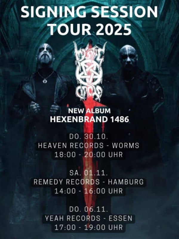 Για την προώθηση του “Hexenbrand 1486”, οι MYSTIC CIRCLE δεν θα πραγματοποιήσουν μόνο τις ακόλουθες, επερχόμενες συνεδρίες υπογραφής, αλλά θα επικεντρωθούν επίσης όλο και περισσότερο σε ένα πολυάσχολο πρόγραμμα περιοδειών, το οποίο θα ξεκινήσει στη Νότια Αμερική και το Μεξικό την άνοιξη του 2026. Η μπάντα υπέγραψε πρόσφατα συμβόλαιο με την Flaming Arts (POSSESSED, BELPHEGOR, GOD DETHRONED και άλλοι). Αναζητούν υποστήριξη από guest μουσικούς για να συμπληρώσουν τη μπάντα στις ζωντανές εμφανίσεις τους.“Θα κάνουμε πολλά, γιατί μας αρέσουν οι παλιές σκηνικές εμφανίσεις μεγάλων δασκάλων όπως οι W.A.S.P, DIO ή ALICE COOPER.”