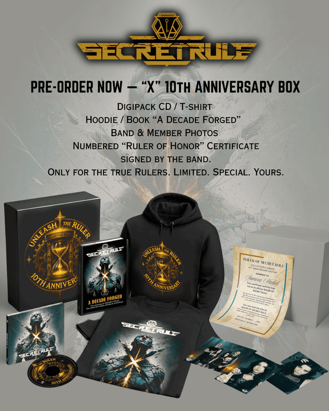 Το επερχόμενο άλμπουμ των Secret Rule, “X”, γιορτάζει την δέκατη επέτειό τους με έναν τολμηρό και σύγχρονο ήχο, συνδυάζοντας τη μοντέρνα metal ένταση, τις συμφωνικές υφές και τον ηλεκτρονικό πειραματισμό.