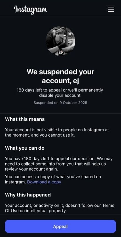 Επιπλέον, πολλοί σημείωσαν ότι τα αυτόματα συστήματα πνευματικών δικαιωμάτων του Instagram πλήττουν κυρίως μικρούς και ανεξάρτητους δημιουργούς. Αφού οι βασικοί της λογαριασμοί ανεστάλησαν, η Emily-Jayne αναγκάστηκε να δημοσιεύσει ανακοίνωση από νέο προφίλ, δηλώνοντας τα εξής: