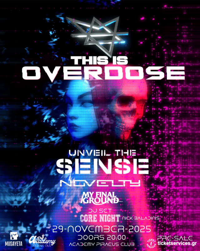 Οι UNVEIL THE SENSE επιστρέφουν με εκρηκτική ενέργεια και παρουσιάζουν το νέο τους άλμπουμ “Overdose” σε μια βραδιά που θα μείνει χαραγμένη στη μνήμη. Το “This is Overdose”, στις 29 Νοεμβρίου στο Piraeus Academy, έρχεται να ταρακουνήσει τη σκηνή με συντριπτικά riffs, φωνητικά που ακροβατούν ανάμεσα σε οργή και μελωδία και ρυθμούς που σε παρασύρουν χωρίς έλεος. Μαζί τους οι NOVELTY και οι MY FINAL GROUND, δύο μπάντες που φέρνουν την απόλυτη core δύναμη και ολοκληρώνουν ένα line-up έτοιμο να ανατινάξει το κοινό. Κι όλη η βραδιά μετατρέπεται σε ένα αδιάκοπο πάρτυ.