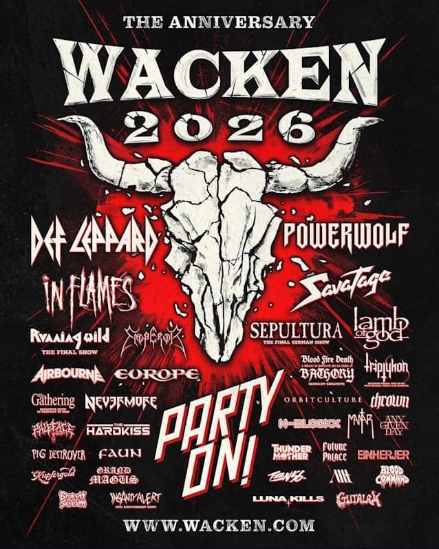 Οι διοργανωτές του ετήσιου φεστιβάλ Wacken Open Air ανακοίνωσαν τα πρώτα συγκροτήματα που έχουν επιβεβαιώσει τη συμμετοχή τους στην έκδοση του 2026, η οποία θα πραγματοποιηθεί από τις 29 Ιουλίου έως την 1η Αυγούστου στο Wacken της Γερμανίας.
