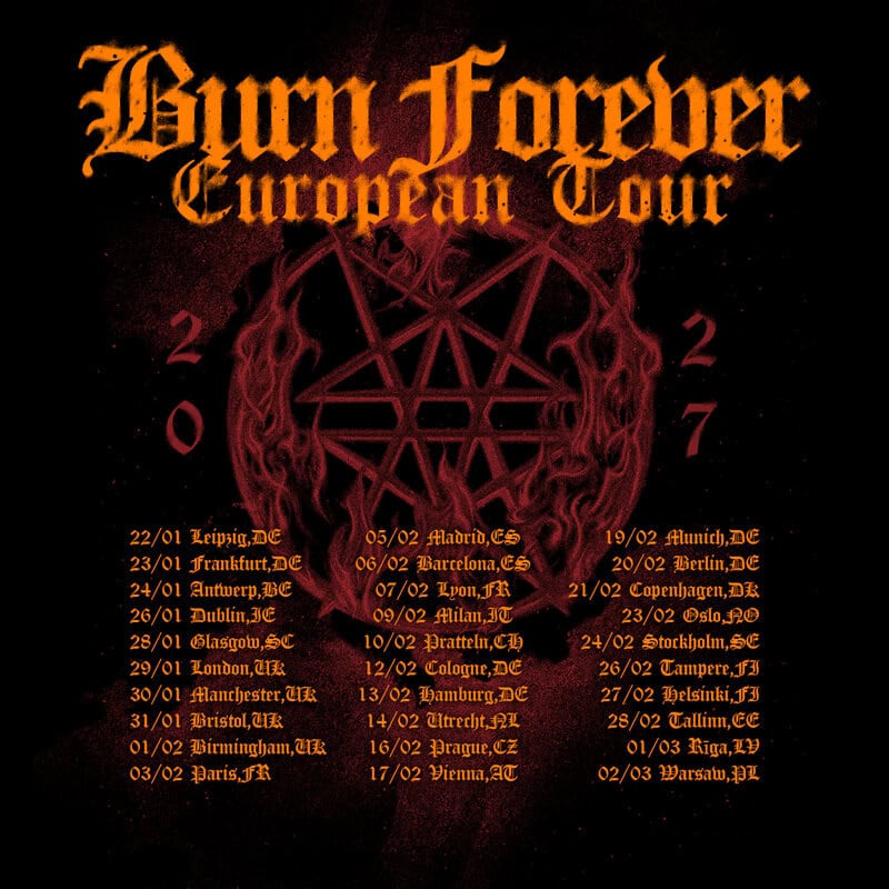 Είμαστε ενθουσιασμένοι που ανακοινώνουμε την ευρωπαϊκή περιοδεία «Burn Forever European Tour 2027». Αυτή θα είναι η πολυαναμενόμενη ευρωπαϊκή περιοδεία με μερικά από τα πιο τρελά ονόματα του σύγχρονου metal. Στις ημερομηνίες στην ηπειρωτική Ευρώπη θα είμαστε headliners, ενώ σε όλες τις ημερομηνίες στο Ηνωμένο Βασίλειο θα είμαστε co-headliners με τους SYLOSIS, οι οποίοι θα κλείνουν τις συναυλίες. Ανυπομονούμε να σας δούμε όλους εκεί, νέους και παλιούς οπαδούς, μην το χάσετε!